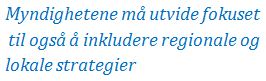 Myndighetene må utvide fokuset fra kun å tenke på lokale matvarespesialiteter til de nasjonale dagligvarekjedene til også å inkludere regionale og lokale strategier som fremmer både produksjon og konsum av lokal og kortreist mat. Dette vil styrke matmangfoldet og omsetning, der det er stort potensial for å øke det sistnevnte om man satser bredt mot ulike lokale kundegrupper. En bred lokal og regional satsing på utvikling og salg av lokal mat er nok i lengden helt avgjørende for å øke forbrukernes oppmerksomhet om kortreist mat og for å kunne få en bærekraftig næring på lang sikt.