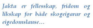 For jakta er fellesskap, fridom og likskap, og den vert fortalt fram som dét av både skogeigarar og eigedomslause. Den er forteljinga om andre kapitalformer enn dei som gjeld i ”det andre” livet, forteljinga om at ”kula er demokratisk”, som ein elgjeger formulerte det. Den gjer med andre ord ikkje skilnad på kor tjukk pengepungen åt den som trekkjer av, er. Det er ferdigheitene dine som jeger som tel på jakta, ikkje utdaningsnivået eller om du er rik eller fattig.