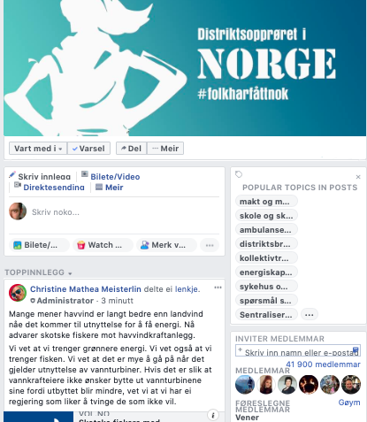 Facebookgruppa Distriktsopprøret i Norge har i dag over 40 000 medlemmar